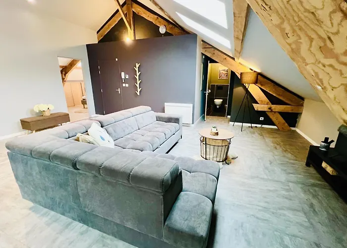 Spacious Modern Quiet - Hypercentre Gerardmer apartment provides easy access to various city attractions, such as the Catholic church "Temple de Gerardmer", situated just a 5-minute walk away. Wi-Fi and parking are also available at the apartment.